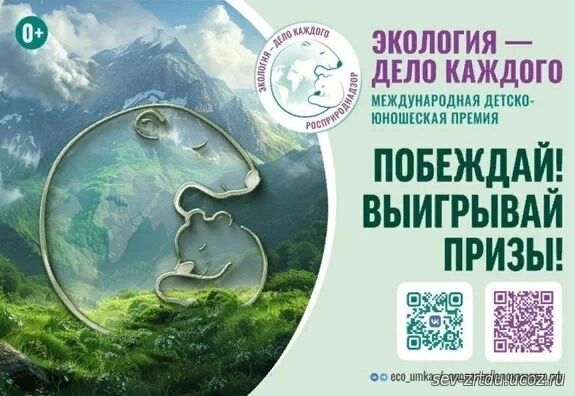 Приглашаем детей и взрослых из всех уголков нашей планеты принять участие в Международной детско-юношеской премии «Экология – дело каждого». Придумывай проекты по улучшению экологии в своем городе, проводи исследования, пой и танцуй, присылай мультфильмы, проводи экологические акции и флешмобы, снимай экоблоги, фотографируй и рисуй. Участвуй сам или с семьей и друзьями! Присылай свои творческие работы до 1 апреля на сайт премии - www.экологияделокаждого.рф. Количество работ неограниченно во всех