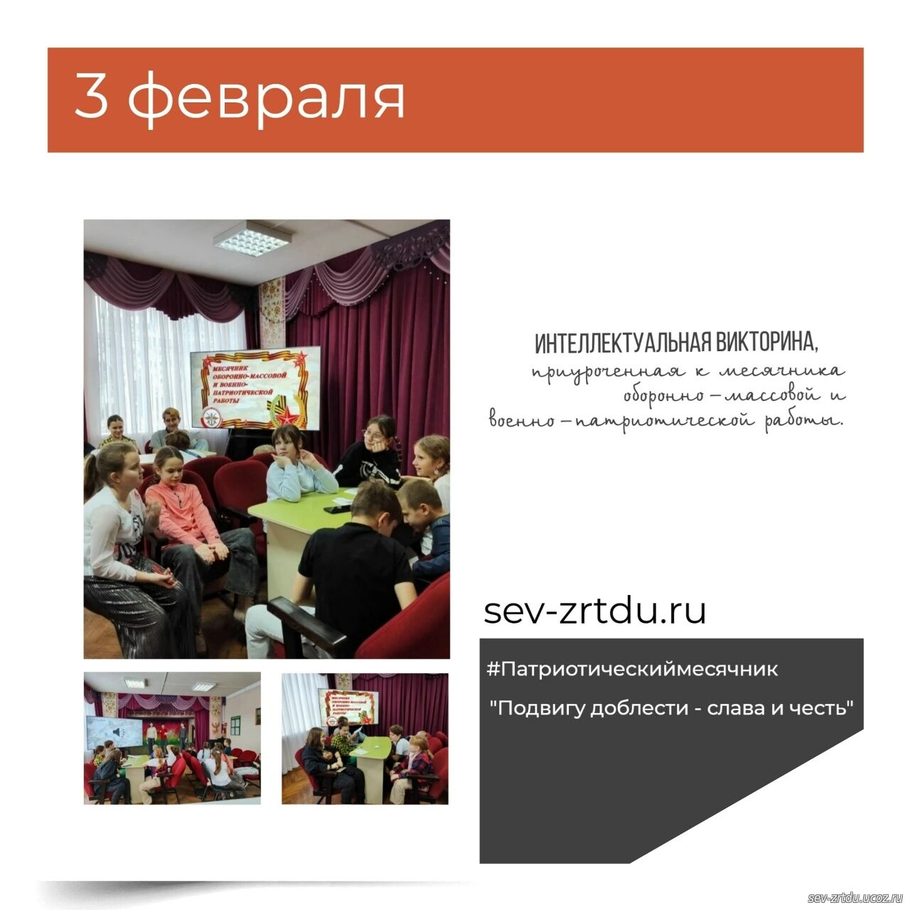 В объединении "Вверхтормашками" (педагог Курдюкова М.А.) прошла интеллектуальная викторина, приуроченная к месячника оборонно-массовой и военно-патриотической работы. Ребята отгадывали тематические загадки, поговорили о главных датах Великой Отечественной войны, а также вспомнили военные песни. Встреча получилась полезной и интересной.