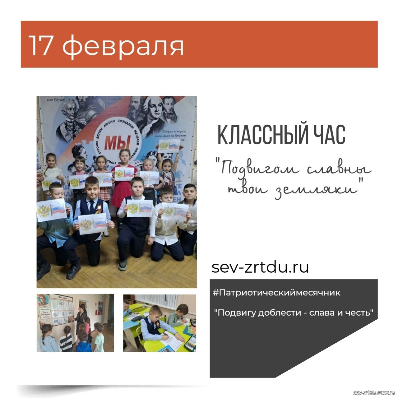 В рамках военно- патриотического месячника в объединении "Время английского" (педагог Рупташ Ю.В) прошёл тематический классный час "Подвигом славны твои земляки". Ребята узнали об обороне города Новороссийска в годы ВОВ. А так же о подвиге пионера-героя Вите Новицком, отдавшего жизнь за Родину. Его подвиг навсегда останется в нашей памяти. Кроме этого ребята вспомнили и назвали Государственные символы нашей страны (герб, флаг, гимн), которые отобразили в своих рисунках.