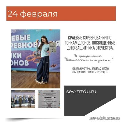 По дисциплине "Технический симулятор", среди юниорок 10-17 лет Коваль Кристина (12 лет) заняла 2 место. Объединение