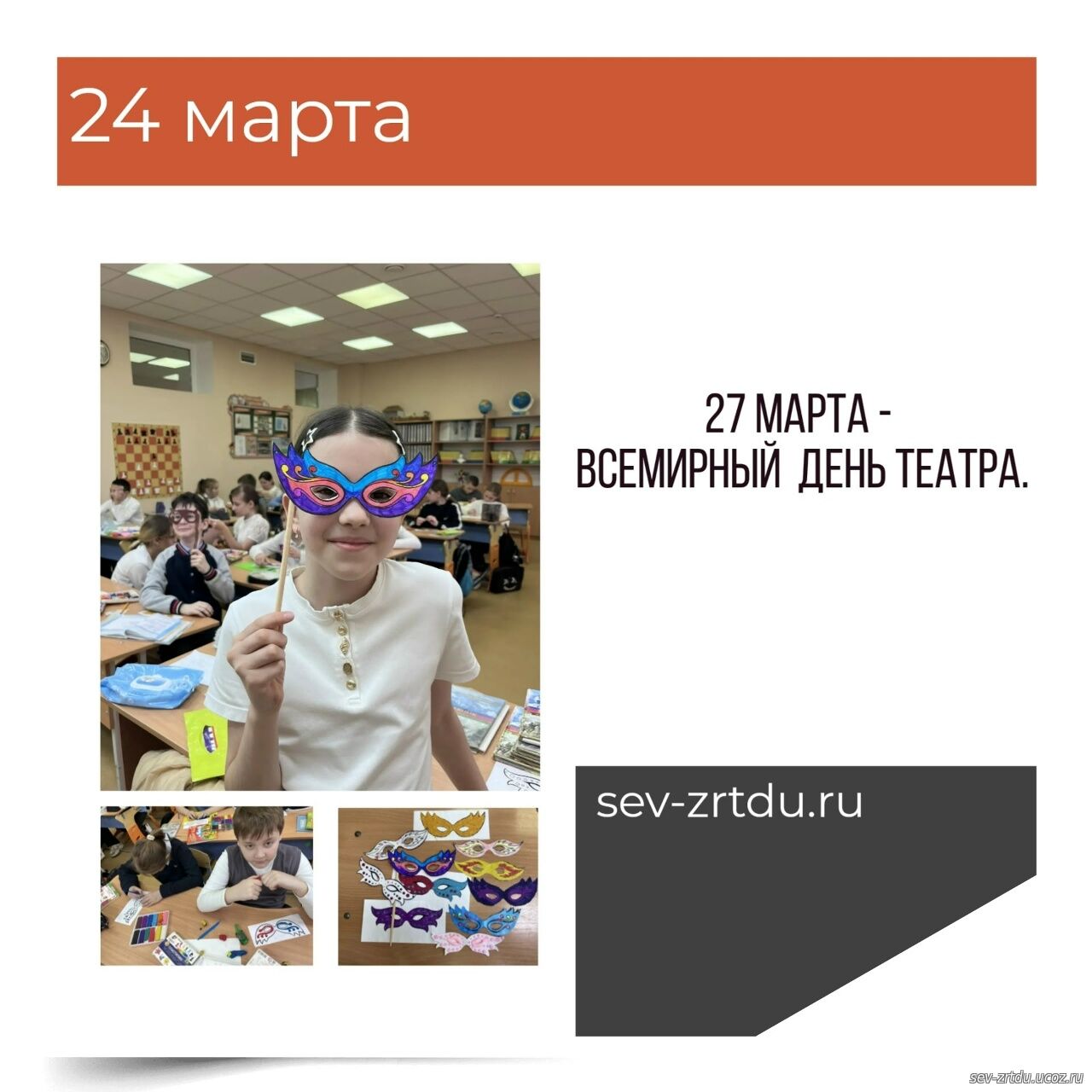 27 марта - Всемирный День Театра. Учащиеся объединения «Рукотворушка» (педагог Михайлова А. Р.) познакомились с театральными жанрами, профессиями, разыграли сценки. Ребята проявили творческий подход и изготовили театральные маски.