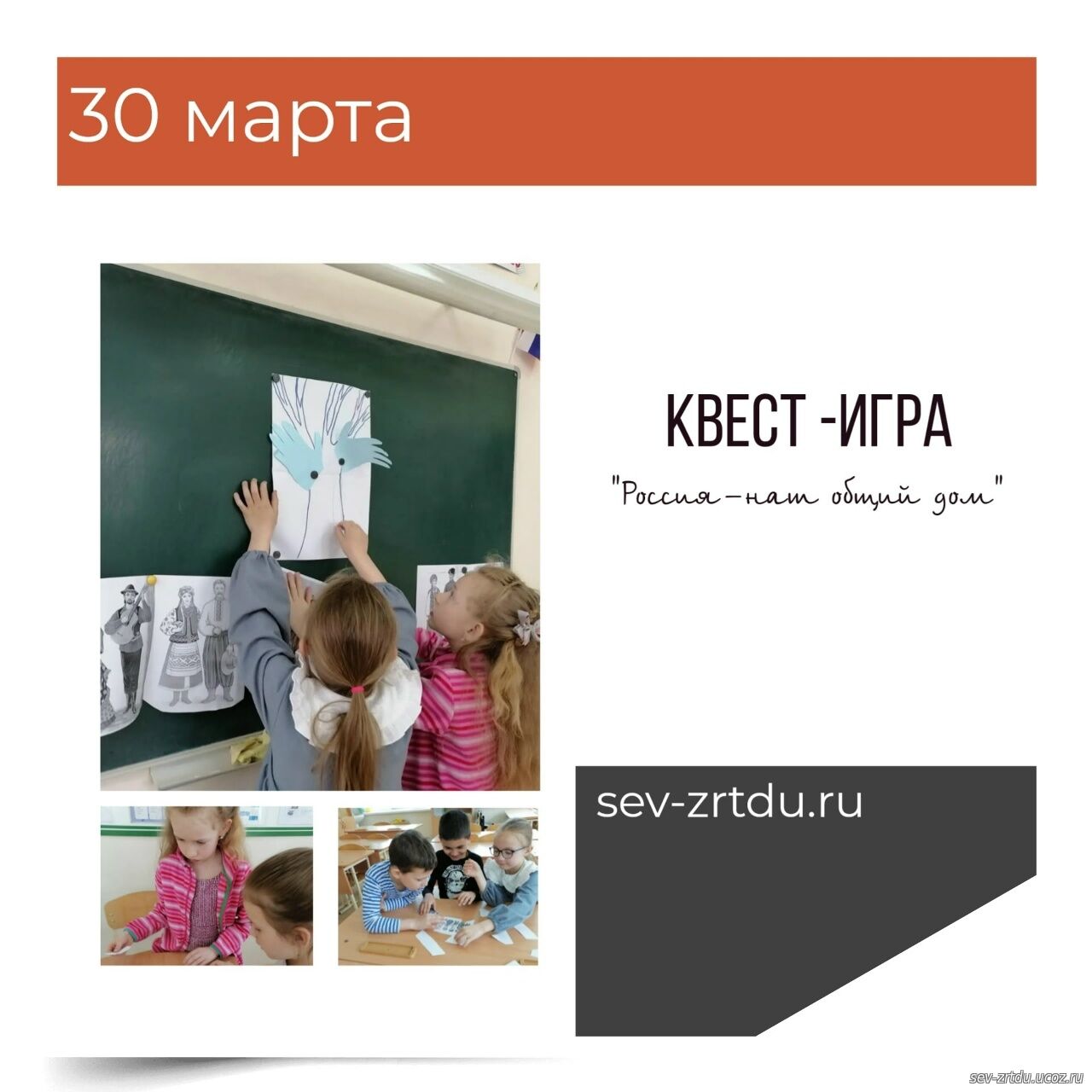 Россия- уникальная страна. И от сплочения всех народов, важности мира и согласия зависит будущее процветание нашей Родины. 30 марта в объединении "Казачий круг " (педагог Мацагора Е М ) прошла квест -игра "Россия-наш общий дом." Ребята познакомились с народностями живущими в нашей стране, их национальными костюмами. Расшифровали пословицы о Родине и единстве, собрали пазлы, отгадали загадки. В завершении игры было создано дерево дружбы - как символ единства всех жителей нашей огромной и самобытной страны.