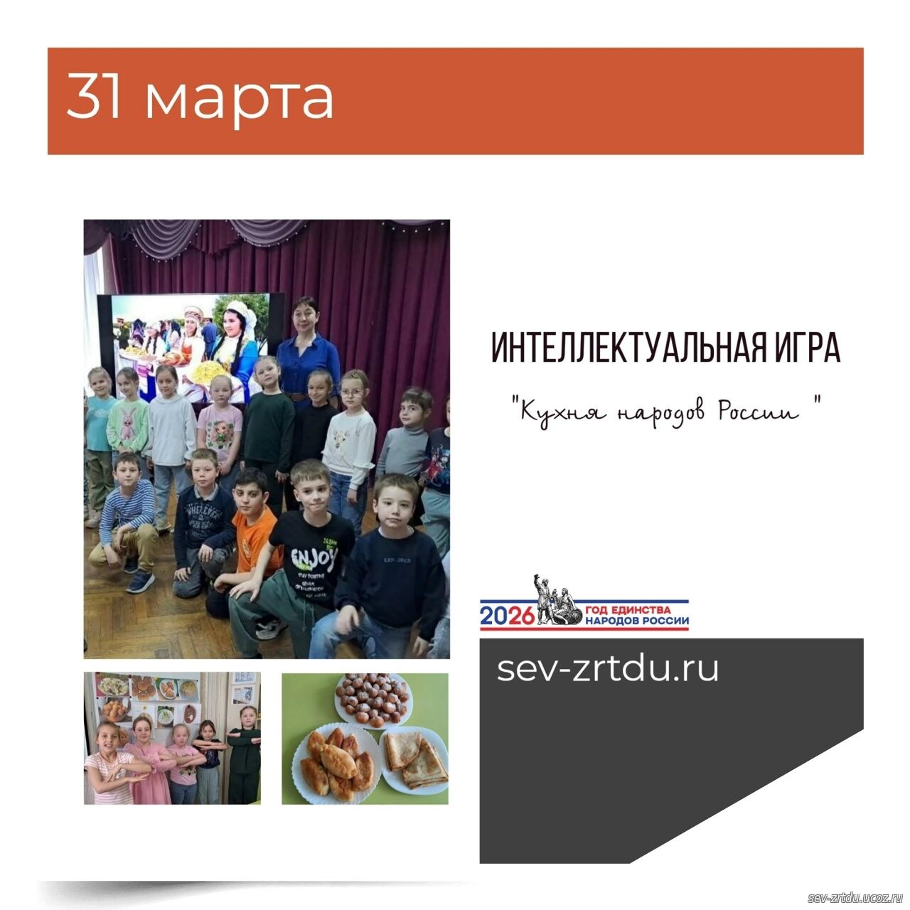 Россия- уникальная страна, объединившая сотни народов языков и культур. В рамках весенних каникул в объединении "Время английского" (педагог Рупташ Ю.В) прошла интеллектуальная игра "Кухня народов России ", приуроченная к Году единства народов России. Ребята познакомились с традициями и обычаями разных народов, с их кухней и национальными блюдами. Посмотрели презентацию о составе блюд и продегустировали блюда русской и казахской кухни.